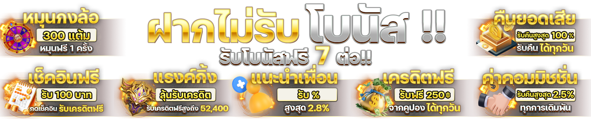 ตอบ : มีโบนัสต้อนรับสมาชิกใหม่ 100% โปรโมชั่นคืนยอดเสีย 10% และกิจกรรมแจกเครดิตฟรีประจำสัปดาห์